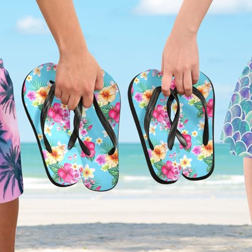 More information about Sinestour Maple Leaf Sketch Orange Hibiscus Leaves Blue Flip Flops for Beach Thong Sandals Anti-slip Lightweight Flat Slippers for Summer Travel Swim