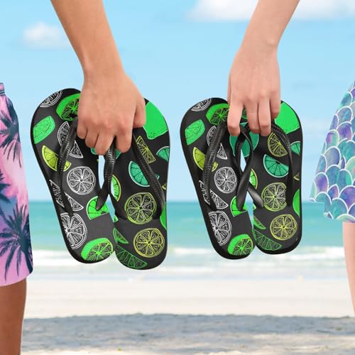 HOT ! Lime Black Flip Flops for Beach Thong Sandals Anti-slip Lightweight Beach Shoes for Summer Outdoor Travel