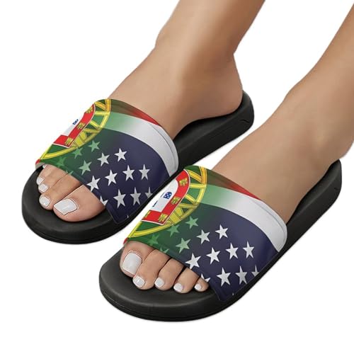 Flag of Portugal And U.S. FLAG House Sandals Non-Slip Bathroom Slippers Beach Summer Shoes for Men Women 6