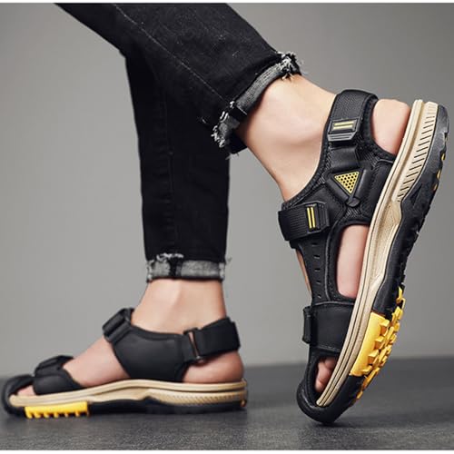 Fashion Men's Large Size Backpacking Hiking Sandals, Breathable Classics Real Leather Sandals, Outdoor Sports Closed Toe Beach Shoes 3