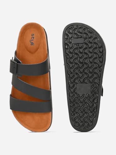 Men 7011887001 Platform Sole Double Band Buckle Detail Sandals 42 Black 7