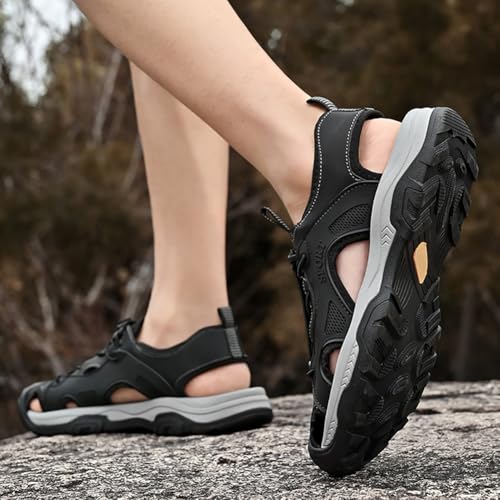 Mens Sandals Hiking Sport Closed Toe Sandals Summer Beach Water Shoes Men Leather Fisherman 7