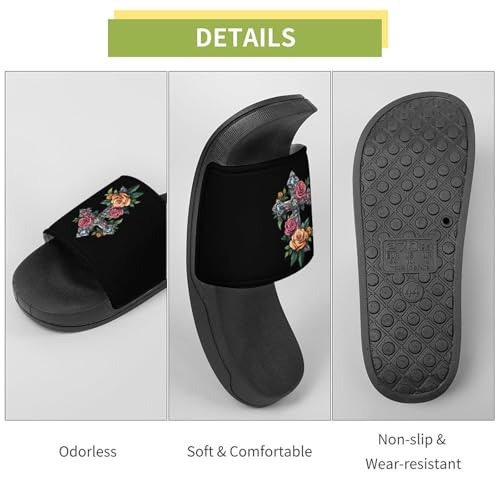 Cross Rose Unisex Shower Shoes House Slippers Non-Slip Indoor Bathroom Shoes for Pool Beach 45 (275mm) 6