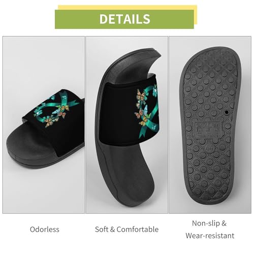 Ovarian Cancer Awarenes Butterflies Unisex Shower Shoes House Slippers Non-Slip Indoor Bathroom Shoes for Pool Beach 40 (250mm) 1