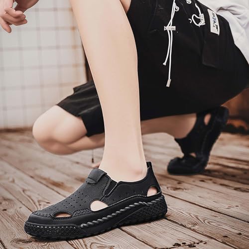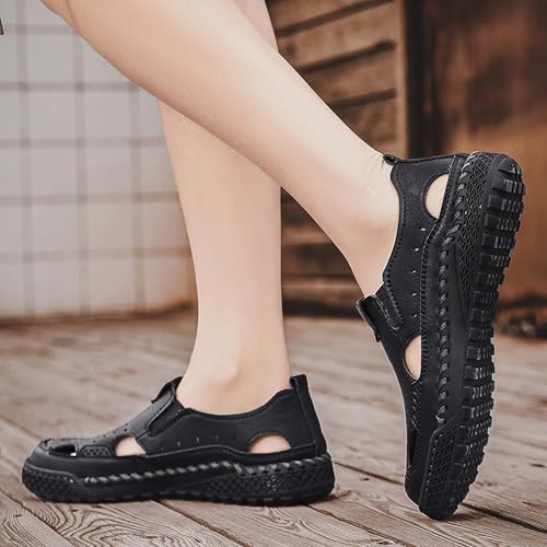 Men's Premium Leather Sandals, Outdoor Sports Sandals, Hand Stitched Non Slip Durable Rubber Soles, Hollowed Out Design Ensures Breathability While Being Stylish 7
