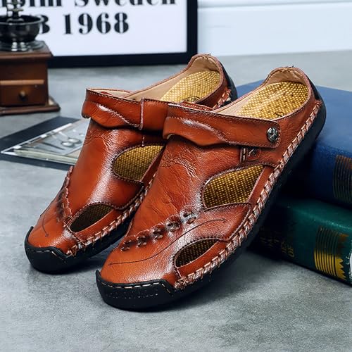 Alidamo Mens Leather Sandals Closed Toe Hollow Durable Summer Outdoor Casual Footwear Shoes 5