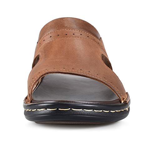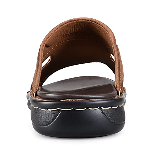 FIEEIF Men's Leather Slides Open Toe Outdoor Slippers Comfort Arch Support Retro Casual Flip Flops Summer Fisherman Slip On Sandals for Men 6