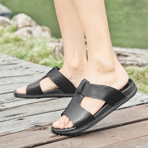 Crepuscute Men's Open Toe Leather Slide Sandals Slip On Comfortable Lightweight Casual Beach Slides Summer Outdoor Sandals 6