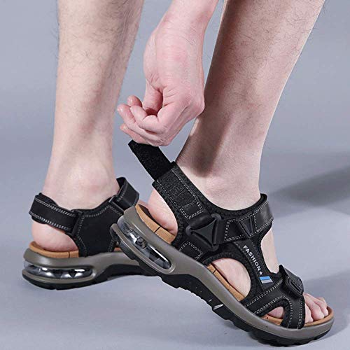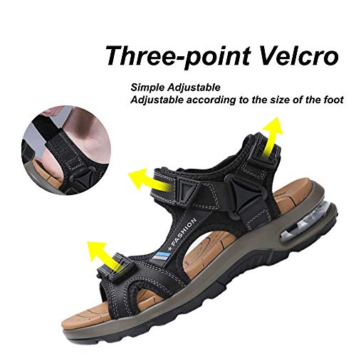 JEBU Men's Leather Open Toe Outdoor Casual Hiking Waterproof Beach Air Cushion Sandals 7