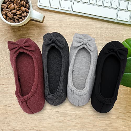 ofoot Womens House Cotton Ballerina Slippers Soft Ballet Style Flat Shoes Comfortable Memory Foam Soled Non Slip Rubber Bottom 4