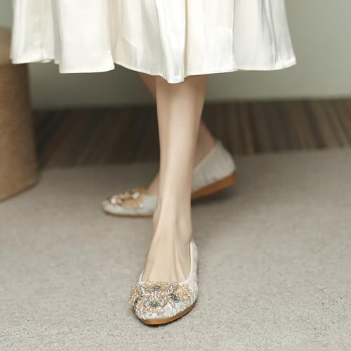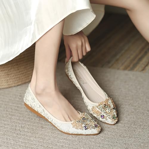• Women's Wedding Beads Flats,decorated with embedded jewels, beautiful, elegant and fashionable,Pointed Toe Shoes Shape, it's just shiny enough to be eye catching without being too gaudy, easy to dress up.