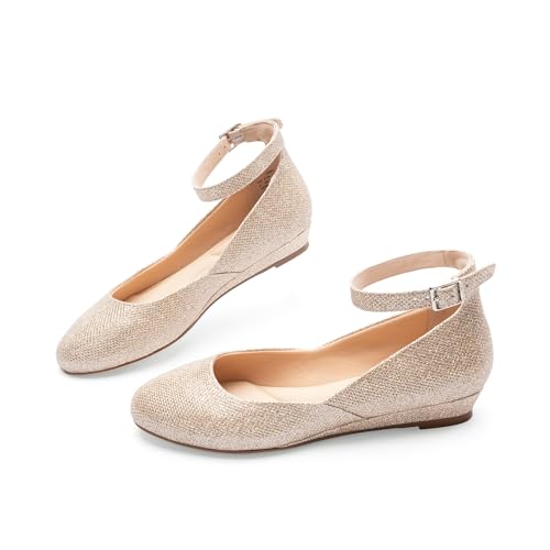 Ballet Flat Shoes for Women with Ankle Strap Low Wedge Heel, Cute Flats for Women, Comfortable Casual Dress Shoes 6
