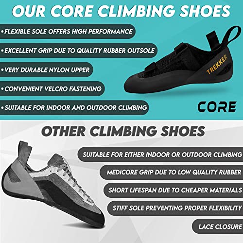 Core Climbing Shoes - Lightweight Breathable Rock Shoes With Dual-Strap Closure - Snug Fit Non-Slip for Wall and Hiking 6