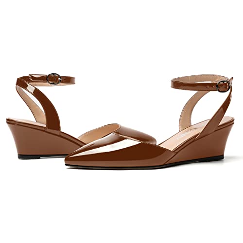 SKYSTERRY Women's Patent Slingback Pointed Toe Ankle Strap Dress Buckle Wedding Wedge Low Heel Pumps Shoes 2 Inch 4