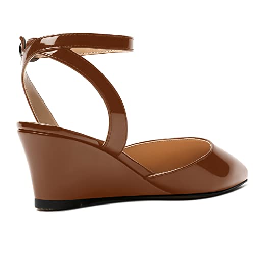 SKYSTERRY Women's Patent Slingback Pointed Toe Ankle Strap Dress Buckle Wedding Wedge Low Heel Pumps Shoes 2 Inch 5