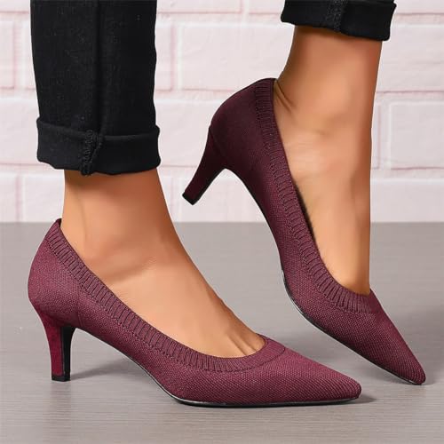 HOT ! Women's Pumps Kitten Heel Pump Shoes Pointed Toe Knit Comfortable Dress Shoes for Work Business Casual Party Dressy, US Size 5-11