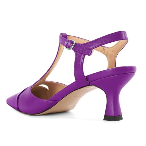 SAMMITOP Womens Kitten Heels T Strap Closed Pointed Toe Pumps Low Heel Ankle Strap Wedding Party Evening Dance Dress Shoes 2.5 Inches 2