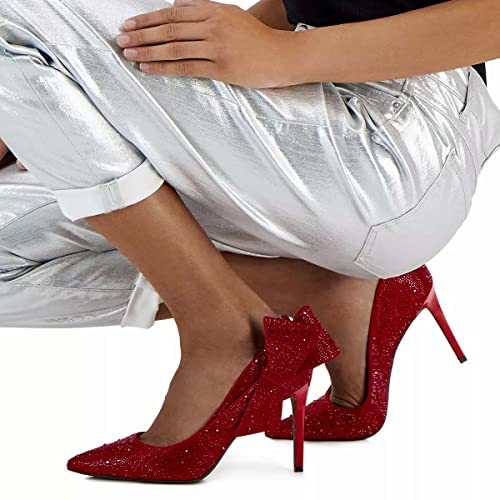 HOT ! XYD Women Pointed Toe High Heel Pumps Glitter Rhinestone Sparkly Prom Shoes with Side Bow Stiletto Wedding Heels for Bride