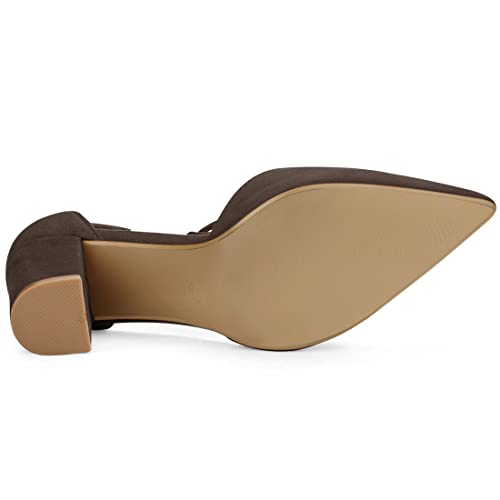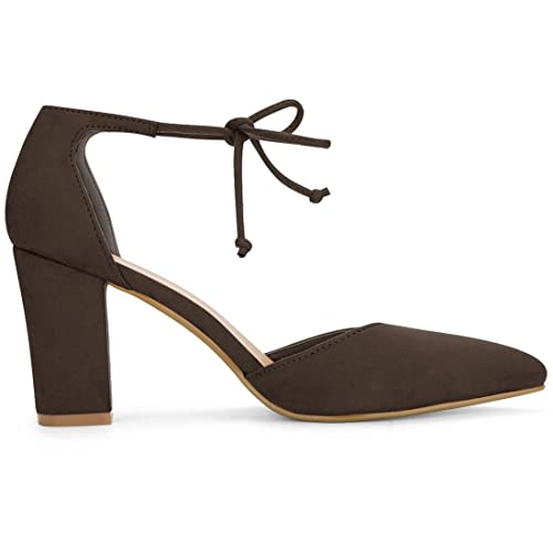 Allegra K Women Ankle Tie Chunky Heel Pointed Toe Dress Coffee Pumps 10 M US 5
