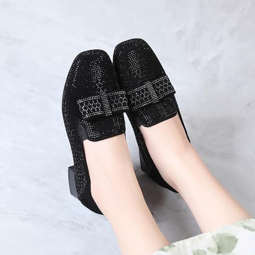 • 【Design Points】This Women'S Thick-Heeled Black Formal Shoes Are Designed With Shiny Rhinestone Decorations, Which Is Very Unique And Elegant, And The Endless Light Exudes Your Feminine Charm. Women'S Shoes Are Casual And Fashionable, And The Fashionable Short Heels Are Easy To Match, Practical And Comfortable