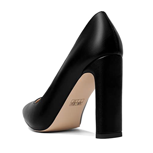 SHOWFOREST Womens Sexy Night Club Pointed Toe Matte Slip On Block High Heel Pumps Shoes 4 Inch 1