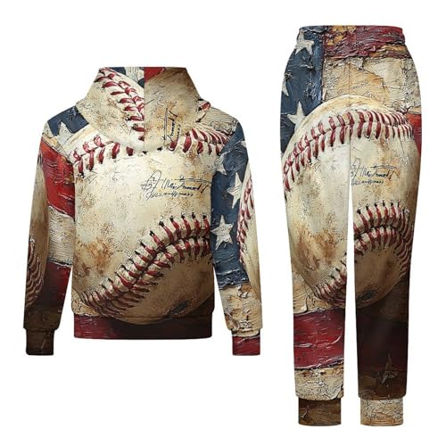 HOT ! Boy's Girl's 2 Piece Outfits Graphic Sweatshirt Kid Long Sleeve Hoodie Set, Baseball American Flag Vintage