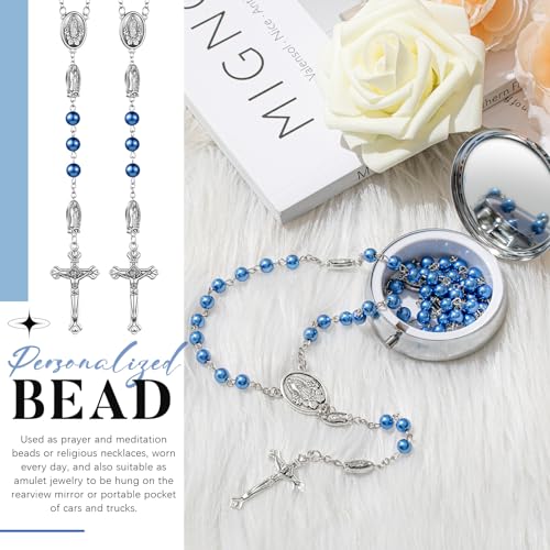 Jadive 24 Sets Catholic Rosary Necklace 6mm Glass Pearl Beaded Necklace with Metal Gift Box for Women Men Prayer Gift 3