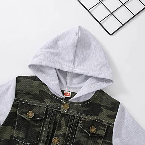 Hooded Camouflage Denim Jacket For Boys Girls Button Long Sleeve Coat Windproof Color Block Outerwear With Pocket 5