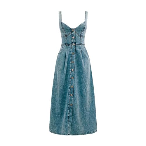 HOT ! cffvdiz Women's Sexy Strap Maxi Denim Dress Summer Sleeveless Halter Bodycon Maxi Dresses