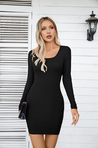 VICHYIE Women Square Neck Ribbed Bodycon Tight Dress Long Sleeve Mid Thigh Pencil Above Knee Dresses 6