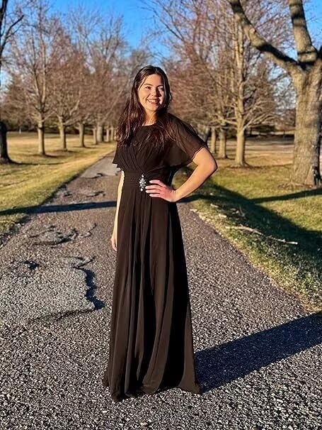 More information about Chiffon Beading Mother of The Bride Dresses for Women 2025 Long Scoop Neck Formal Dress with Sleeves