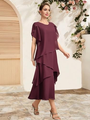Chiffon Mother of The Bride Dresses for Women Tea Length Formal Wedding Guest Dress with Sleeves 6