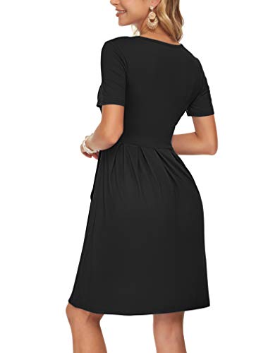 More information about AUSELILY Women's Short Sleeve Summer Dress Pleated Button Down Knee Length Dresses with Pockets 2025 New