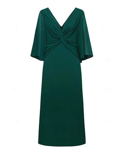 More information about Women's Formal Cocktail Wedding Guest V Neck Long Chiffon Maxi Dresses A-Line 3/4 Sleeve Elegant Bridesmaids Dress