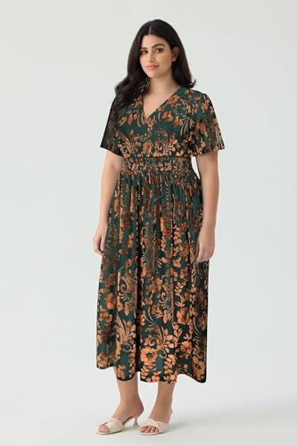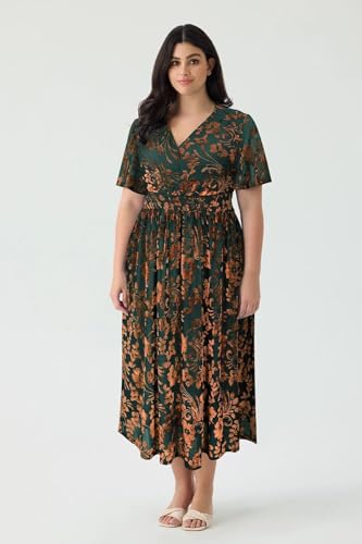 • STYLE: This plus size velvet floral print maxi dress features a variety of colored burnout floral patterns. The burnout print adds a unique charm, while the flowing short sleeves and waist-cinching design enhance the overall elegance. The waist ensures a comfortable fit, helping to conceal the abdomen. The maxi dress design adds a fashionable touch to the overall look. The dress features an invisible zipper at the back for easy wear.