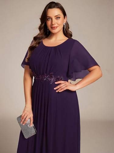 Ever-Pretty Plus Women's Round Neck Appliques Short Sleeves Floor Length Plus Size Formal Dresses Mother of The Bride Dress 5