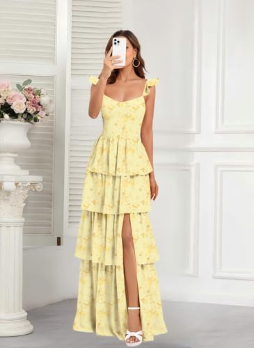 • Features: Ruffles Tiered Bridesmaid Dresses for Women 2025 with Slit, V Neck Tiered Maid of Honor Dress, Plus Size Floral Print Bridesmaid Dresses, Ruffles Maxi Formal Evening Dress for Women Formal Gowns, Tiered Wedding Guest Dress