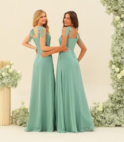 • Features: Flowy Chiffon Bridesmaid Dresses with Ruffles, Spaghetti Straps Chiffon Formal Party Dresses, Empire Waist A-Line Bridesmaid Dresses, Sexy Backless Wedding Guest Dresses. This Long Bridesmaid Dress Features Square Neck, Tiered, Lace Up Back, Spaghetti Straps, Pleats, Ruffles Chiffon Dress, Corset, Built-in Bra. Fully Lined. The summer maxi bridesmaid dress is the best choice for your different occasions.