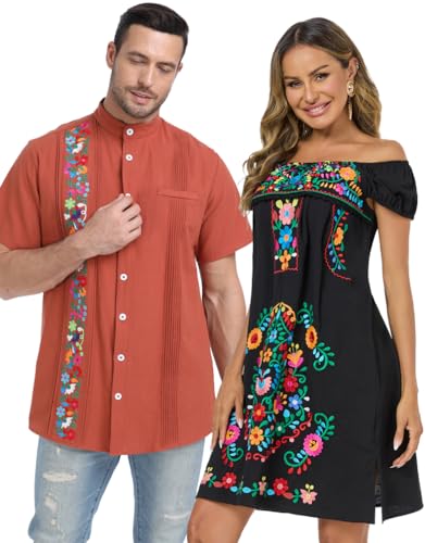 YZXDORWJ Women Mexican Embroidered Dress Casual Loose Bohemian Floral Dress Short Sleeve Long Maxi Summer Beach Swing Dress 6