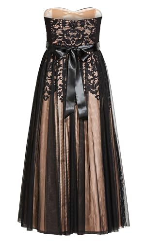• Flattering Fit & Flare: Designed with a cinched belted waist and stretch side panels, this lace and tulle gown ensures a flexible, elegant fit for every body type.