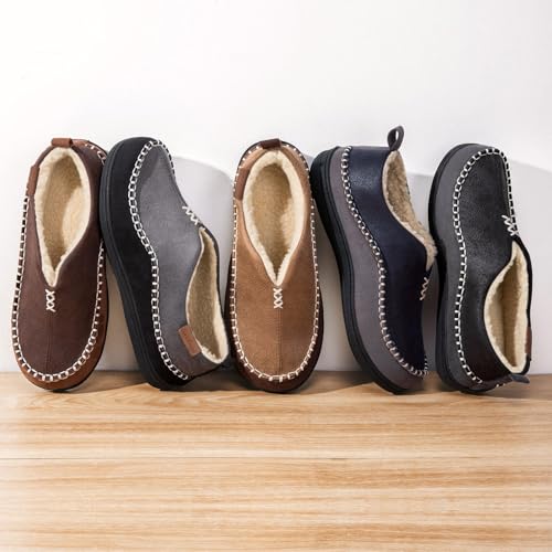 EverFoams Men's Moccasin Slippers Memory Foam Indoor/Outdoor Warm Suede House Shoes with Fuzzy Sherpa Lining 5