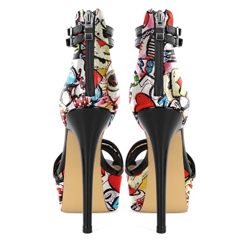 More information about Esvowido Platform Heels for Women Open Toe T-Strappy Stiletto High Heels Sandals 5.5 Inch Double Ankle Strap Pump Shoes with Back Zipper