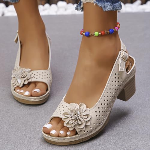 More information about Buckled Square Heel Sandals for Women,Dressy Peep Toe Slingback Chunky Low Heeled Wedge Shoes Sandals