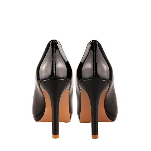 LEMUTISME Women's Patent Leather Sexy Slip On Peep Toe High Heel Dress Pumps Chic Glossy Open Toe Stiletto Heel Platform Sandals 4