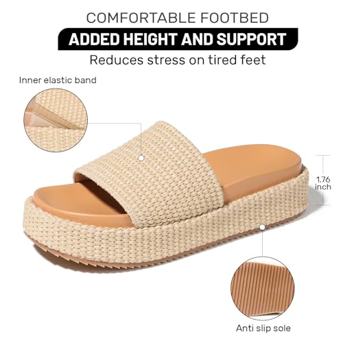 • Premium Materials: Crafted with a woven raffia and soft upper, along with a durable synthetic lining and outsole, these summer platform sandals provide a balance of breathability and longevity