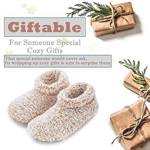HOT ! Cozylook Fuzzy Slippers for Women Indoor, Warm Bedroom Slip On Shoes, Winter Fluffy House Socks with Grippers, Cozy Christmas Gifts Unique