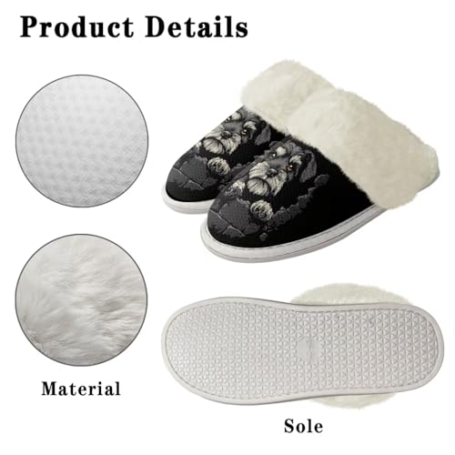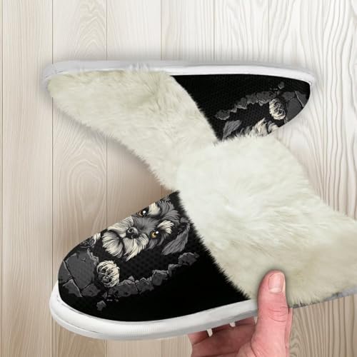 HOT ! Howilath Dog Print Cotton Slippers with Fur Edges Warm House Shoes with Anti-Skid Sole Casual Novelty Fuzzy Slippers