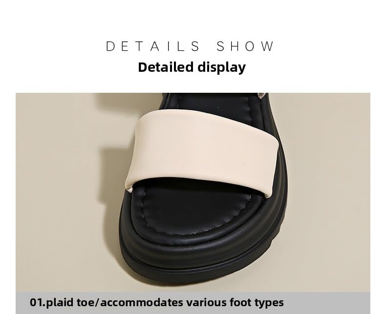 Fashion/Intellectuality/Trend/Modernity,2025 summer new muffin thick-bottomed metal buckle one-word drag Korean version of beach slippers women's summer large-size cool slippers 4