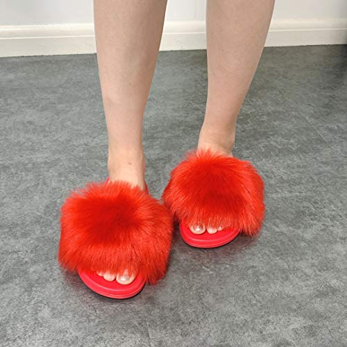 Hangrui Women's Faux Fur Slides, Open Toe Cute Slippers, Comfortable Sandals with Fluffy Fur 6