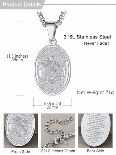 U7 Saint Benedict/Michael Medal Necklace, 316L Stainless Steel Virgin Mary Necklace for Men Women, Bible Verse Protection Necklace Catholic Jewelry,22"-24" Adjustable 5